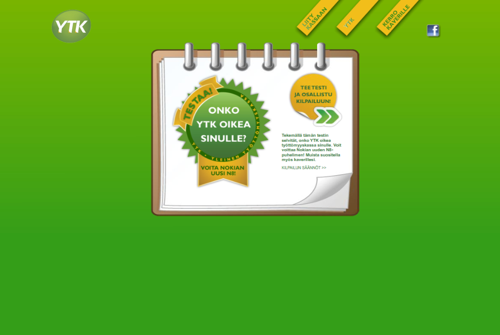 YTK:n kampanjasivusto, jossa pääsee testaamaan onko ko. työttömyyskassa sinulle oikea. Ja voit voittaa Nokian N8 -puhelimen!